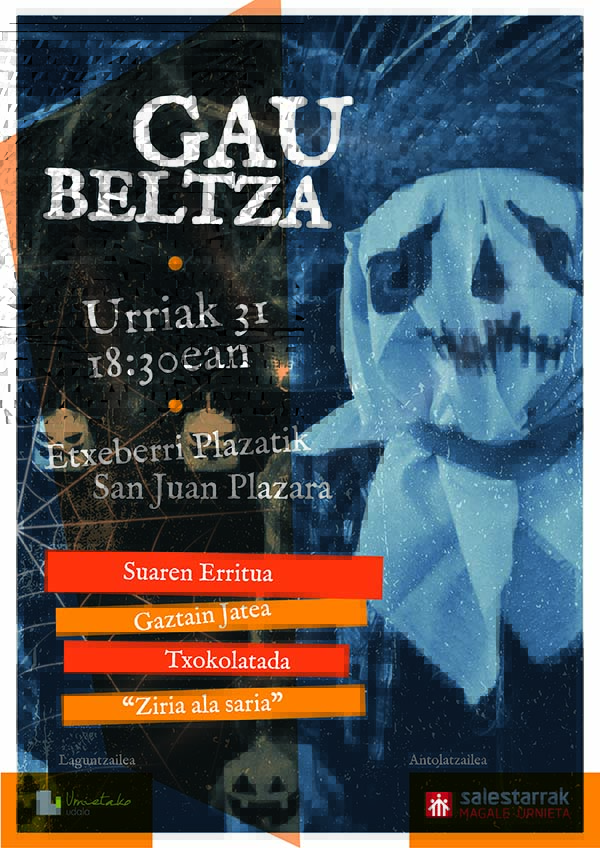 Al igual que en muchos rincones de Euskal Herria, el 31 de octubre es una noche que se ha celebrado históricamente en Urnieta. Precisamente mantener y seguir recuperando esta costumbre es lo que los organizadores, Salestarrak Magale Urnieta ikastetxea, quieren impulsar. Así, el próximo 31 de octubre se celebrará en Urnieta la “Gau Beltza”. Hace cinco años comenzaron a organizar la primera edición de la fiesta y para este año han introducido varias novedades para que la fiesta sea aún más redonda.
