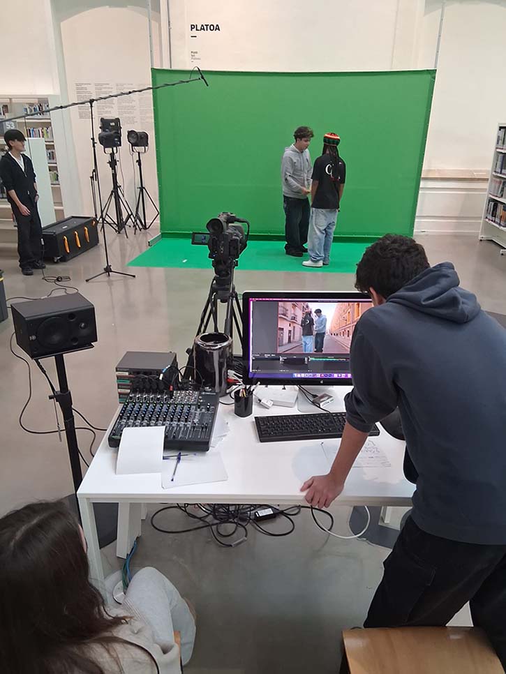 Han acudido estudiantes del área de Gráficas y han tenido la oportunidad de realizar el taller de “croma” propuesto en el mismo. Además de crear una historia, han estado aprendiendo cómo hay que utilizar el croma y analizando las diferentes posibilidades que tiene.